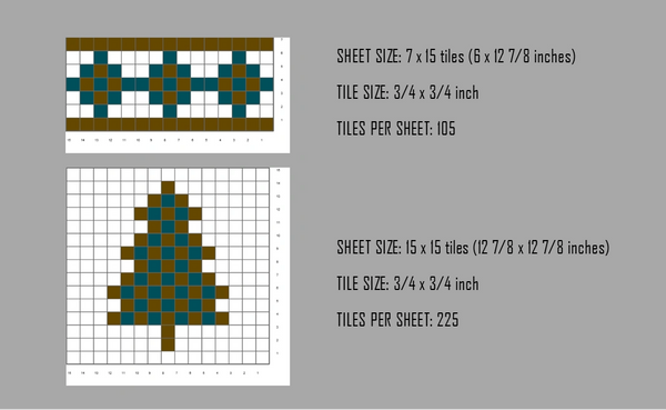 Large sheet: 15 x 15 tiles (12 7/8 x 12 7/8 inches)